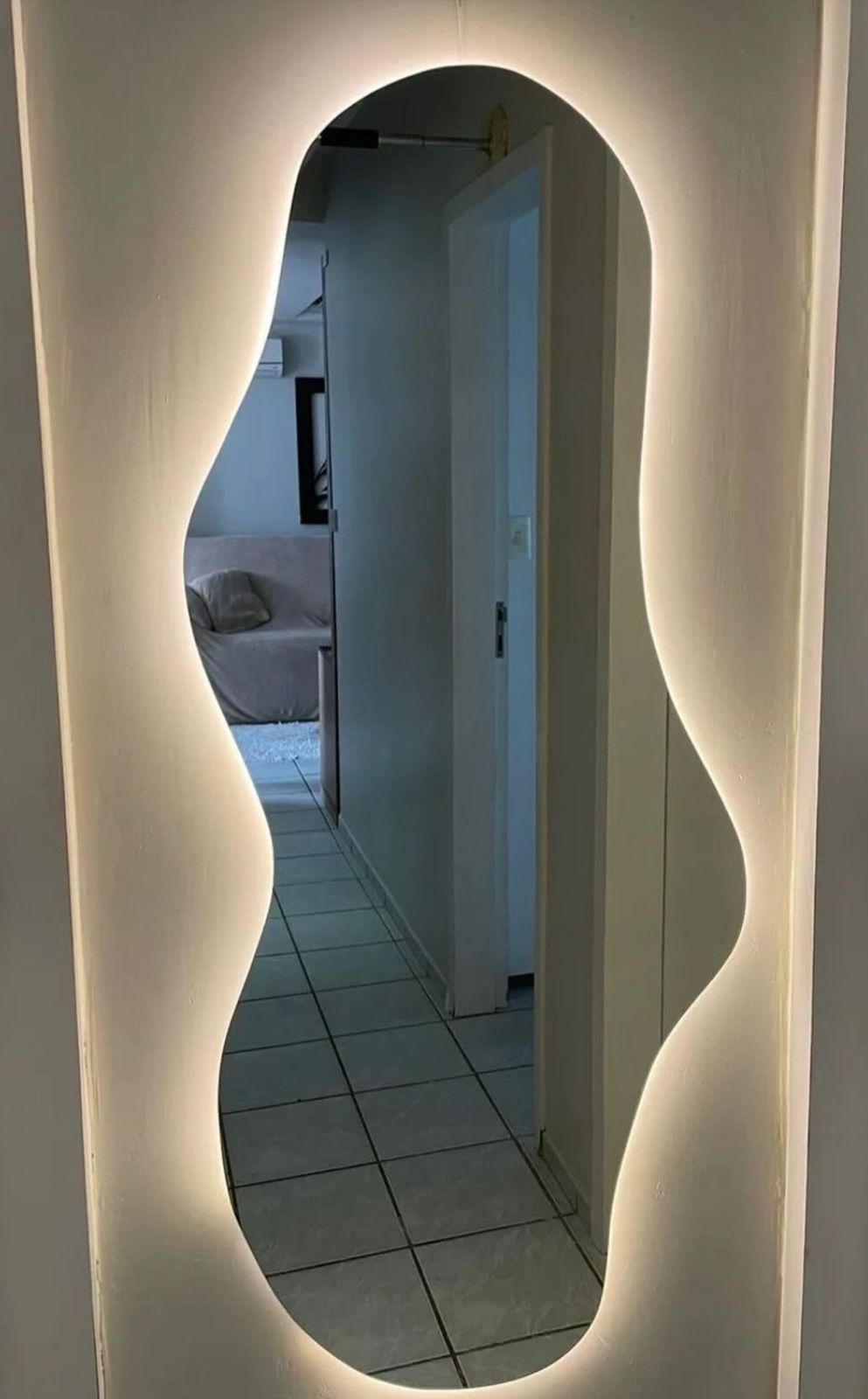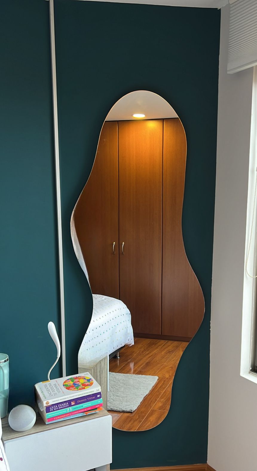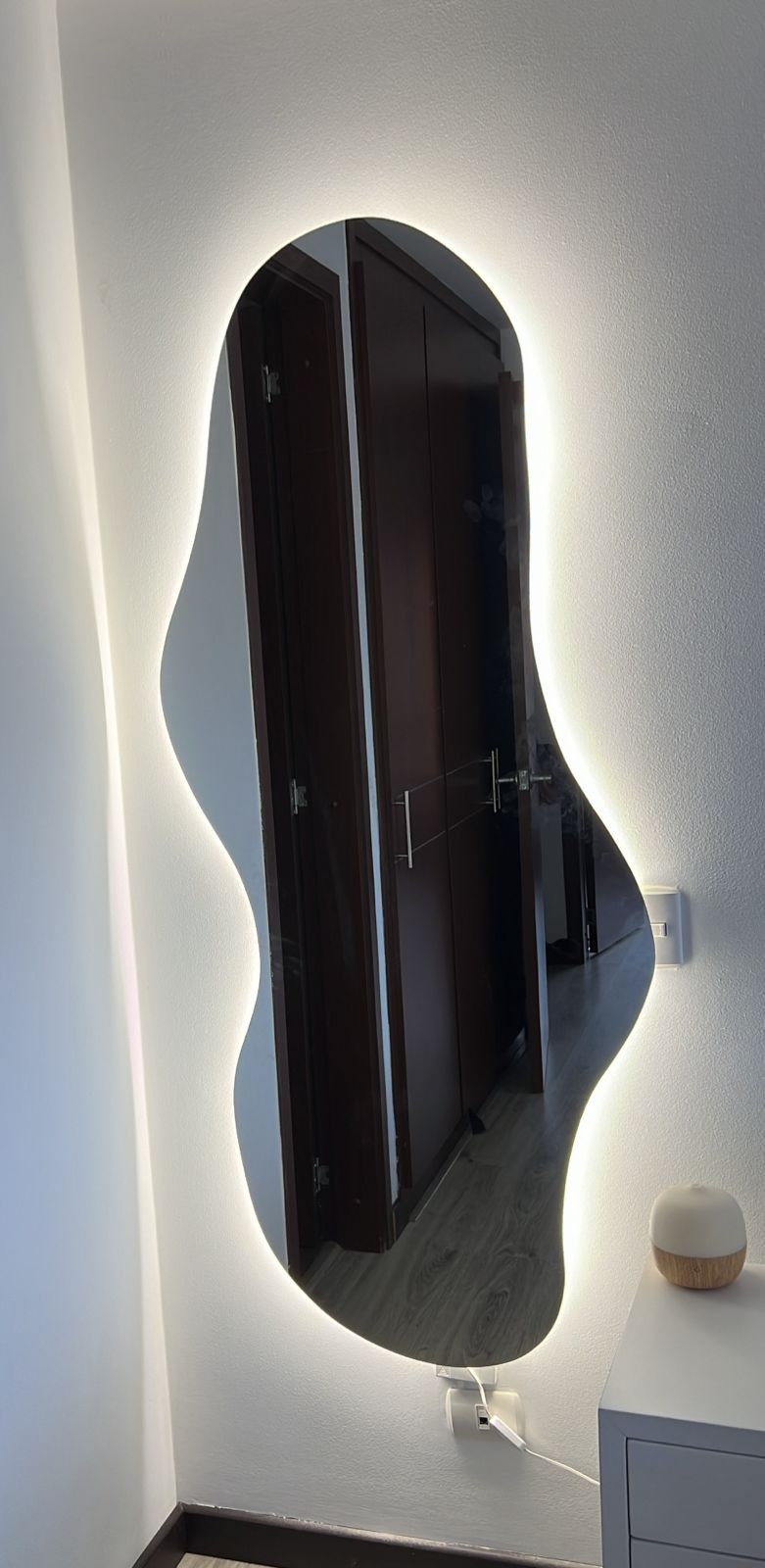 Este espejo de diseño orgánico es una pieza que combina elegancia y modernidad, ideal para transformar cualquier espacio del hogar. Su silueta fluida, inspirada en las formas naturales, rompe con las líneas rígidas de los espejos convencionales, aportando dinamismo y una estética contemporánea. La estructura delgada de 3 mm de espesor brinda ligereza visual sin sacrificar la calidad y durabilidad del producto.