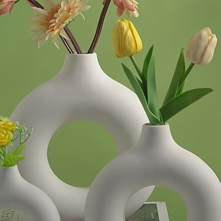 Características: inyecte un toque de fantasía en su decoración con nuestro encantador jarrón en forma de donut, lo suficientemente versátil como para decorar ramas o como una pieza independiente. Este jarrón está disponible en una variedad de colores para complementar cualquier tema de decoración y combinación de colores. Cada jarrón es una adición lúdica pero elegante a su espacio, que ofrece funcionalidad y atractivo estético. Aproveche la singularidad de este jarrón con forma de donut y mejore sin esfuerzo su decoración con su peculiar encanto.